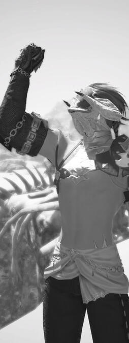 is a man of many faces - save his own.At times it's obvious by his accent he's Ishgardian, but at others you would hardly know from his flawless Eorzean with a hint of a Gridanian lilt. Most often he betrays hints of nobility, flaunting wealth and impeccable manners- but sometimes he can be demure, unobtrusive, even scathing and coarse. There is mischief in his manners... and the cold, calculating threat of fury and violence coiled beneath the surface, ever ready to strike.The Au Ra Raen will oft offer little more of himself then a wildly made up story (you think), or a simple business card: all black with gold emboss, emblazoned with a mask holding a hand with a raised index finger indicating quiet, and the words: "Eterna Rogue, Information and Secret Suppression". He doesn't seem to work alone, but few, if any have ever heard of this 'network', and he even claims that one can hire their services without needing gil...Who, or what, drives this man?Perhaps it is simply an overwhelming passion which can never be sated that keeps this self-proclaimed hedonist wandering ever onwards? Or perhaps there is something more he seeks?The man wears many masks. Which is his true face?